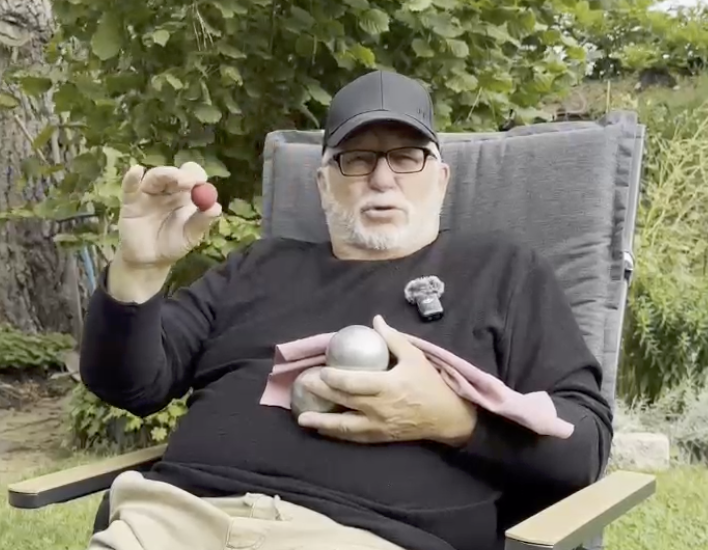 Für das Boulespiel brauchst du drei gleiche Eisenkugeln zwischen 650 und 800 g. Wir spielen zwei gegen zwei (Tate a' Tete) oder drei gegen drei (Triplette)